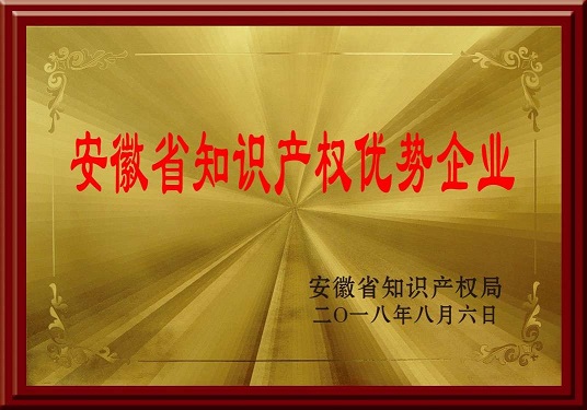 在公司董事長及總經(jīng)理的正確領(lǐng)導下,我司于2018年8月6日榮獲安徽省知識產(chǎn)權(quán)優(yōu)勢企業(yè),2018年8月15日榮獲國家知識產(chǎn)權(quán)優(yōu)勢企業(yè)。