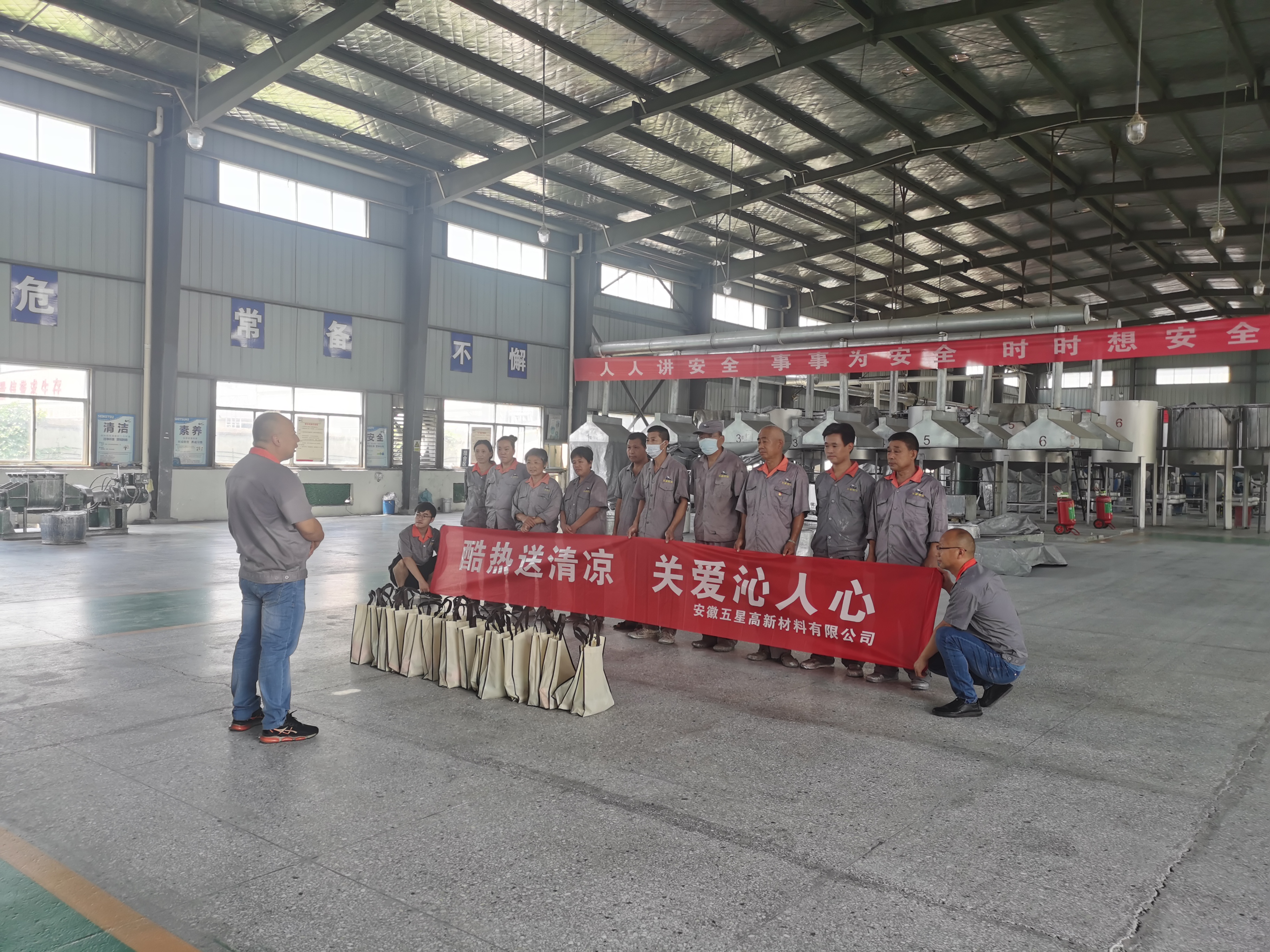 時值盛夏,烈日炎炎,為做好高溫天氣下的安全生產(chǎn)工作,傳遞公司對員工的關(guān)切。安徽五星高新有限公司開展“酷熱送清涼